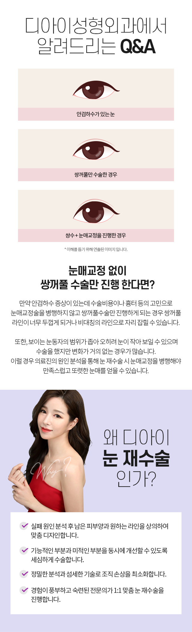 뒤트임+밑트임 같이 수술을 하여 가로로 시원하게 트인 눈매를 만들어줍니다.