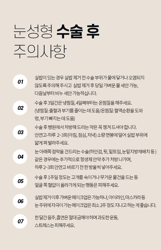 성형수술 후 출혈, 감염, 염증 등 일반적으로 발생할 수 있는 합병증은개인에 따라서 정도의 차이가 있을 수도 있으므로 세심한 주의가 필요합니다.
