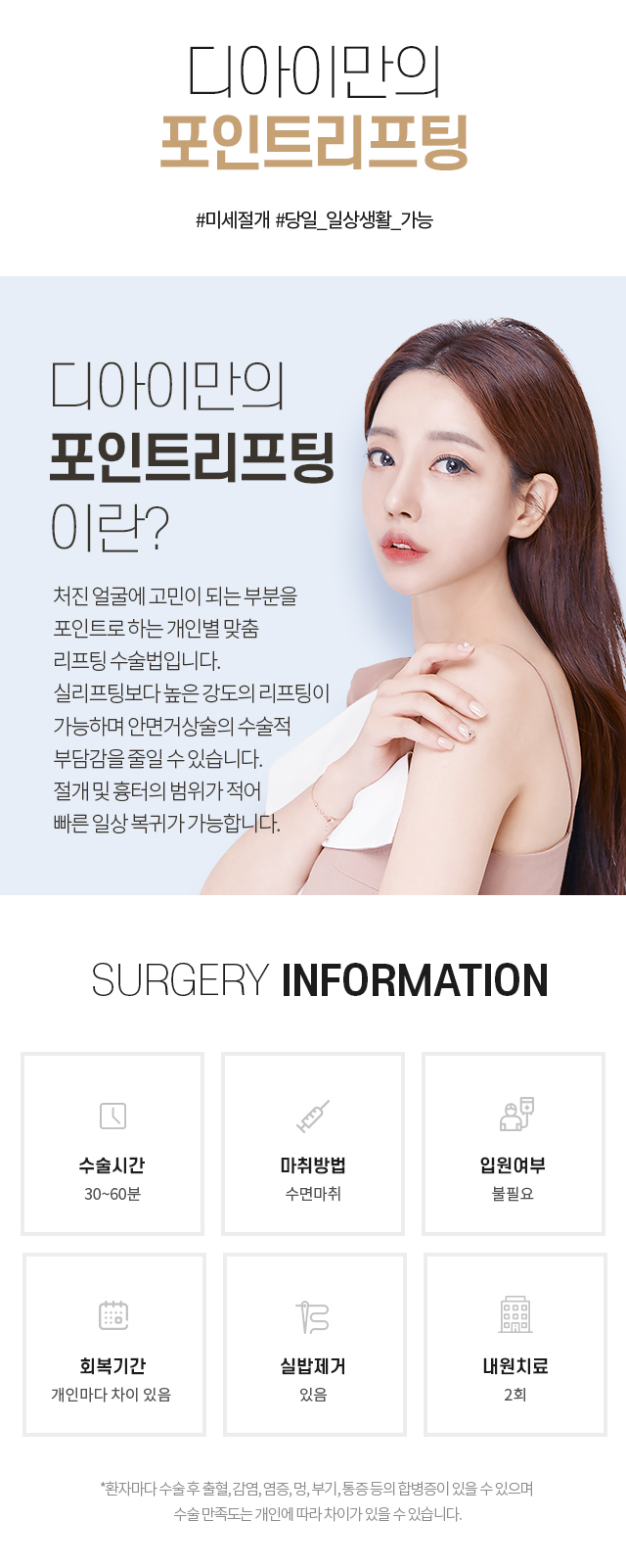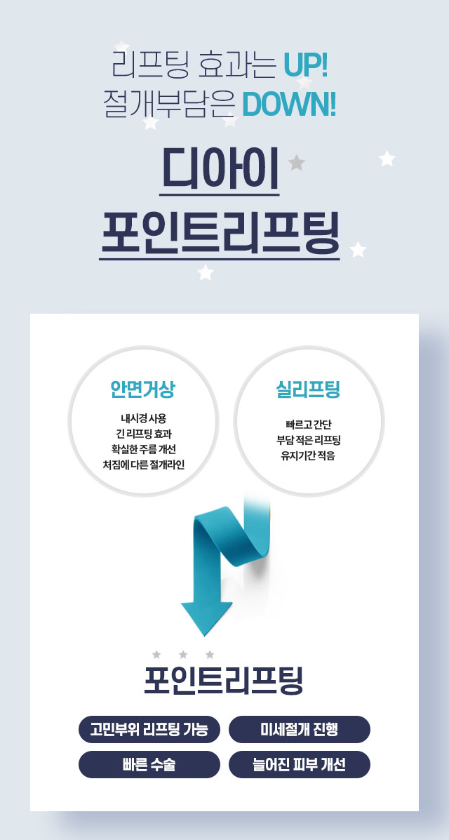 쳐진 얼굴이 고민되는 부분을 포인트로 잡아미세절개로 흉터가 적은 수술