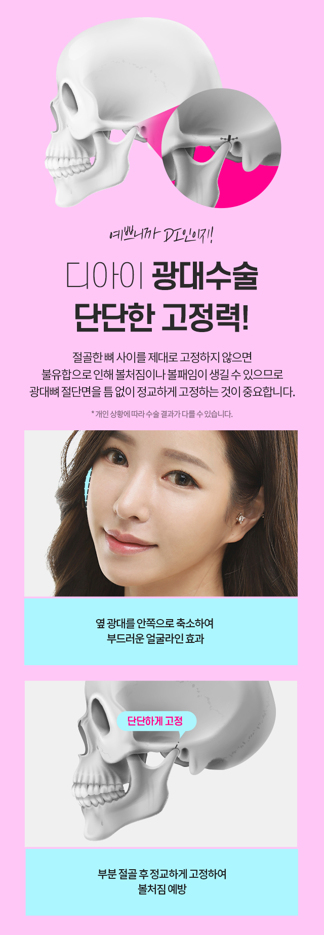 긴턱, 넓은턱, 무턱 등 개인별 맞춤 수술법을 통해 슬림하고 예쁜 V라인 완성